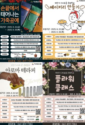 정헌율 익산시장은 "청년들이 취미 활동을 통해 활기찬 일상을 누리고, 문화적 갈증도 해소할 수 있도록 문화학교를 운영한다"며 "앞으로도 청년들이 지역에 안정적으로 정착하고 활발히 교류할 수 있도록 다양한 지원을 이어가겠다"고 밝혔다.