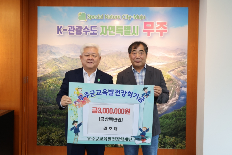산들애 식당의 라 대표는 2021년부터 올해까지 매년 장학금을 기부하는 등 무주군 지역인재 양성과 교육 발전에 힘을 보태고 있다.