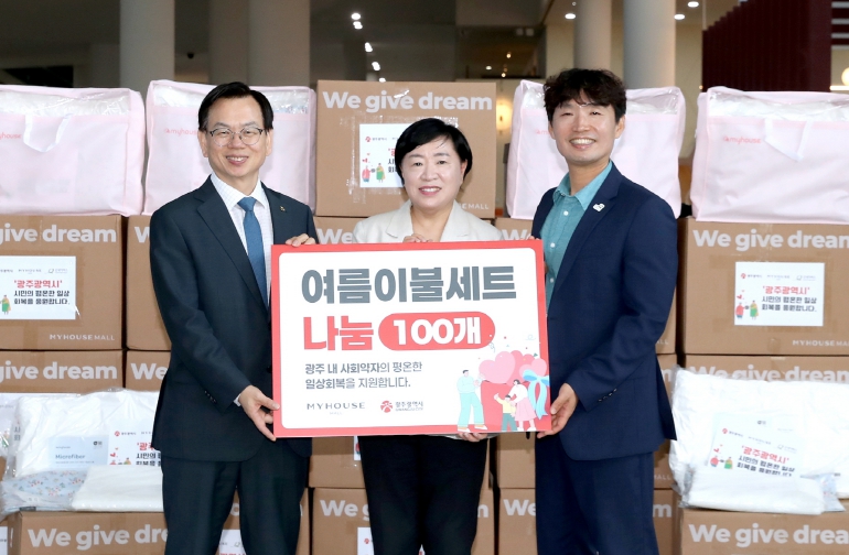 광주광역시는 침구 전문기업인 ㈜마이하우스가 총 1000만원 상당의 여름이불과 베개 100세트를 후원했다고 21일 밝혔다.