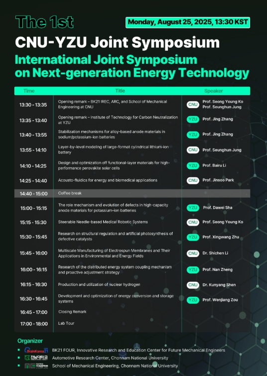 이번 심포지엄은 전남대학교 BK21 미래혁신기계기술 인재양성 교육연구단, 자동차연구소, 기계공학과가 공동 주최하며 차세대 에너지 기술에 대한 연구 성과를 공유하고 국제적 학술 교류를 확대하기 위해 기획됐다.
