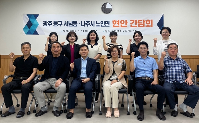 이날 간담회에는 광주광역시 동구 서남동 이수일 동장, 이형철 주민자치회장 등 6명과 나주시 노안면 문혜인 면장, 양찬규 주민자치위원장 등 7명 등이 참석해 지역축제 교류, 고향사랑기부금 활성화, 주민자치 교류 확대 등 주요 현안을 공유했다.