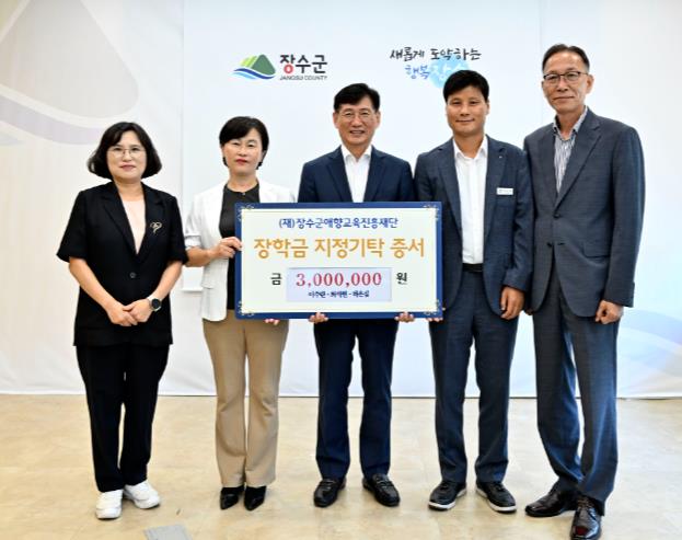 최훈식 이사장은 “공직자로서의 사명감뿐만 아니라 지역사회를 향한 따뜻한 마음에 깊이 감사드린다”며 “기탁해주신 장학금이 장수군 학생들의 교육 기회의 확대와 꿈을 키울 수 있는 환경을 조성하는데 소중히 사용될 수 있도록 최선을 다하겠다”고 감사를 표했다.