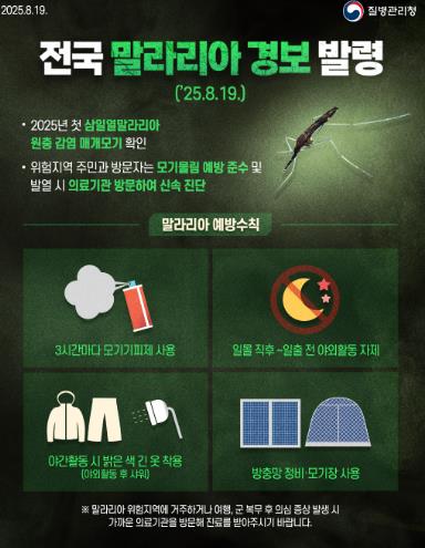 말라리아는 모기를 통해 전파되는 제3급 법정감염병으로, 국내에서는 매년 4월부터 10월까지 집중 발생하는 양상을 보인다.