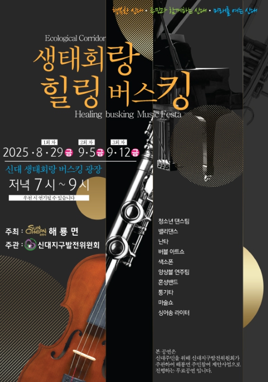 이형금 해룡면장은 “이번 버스킹 행사가 주민들에게 잠시나마 즐거움과 위로가 되길 바란다”며 “앞으로도 주민들의 문화예술 활동을 지원하고 주민간의 연대감을 강화할 수 있는 행사를 만들기 위해 힘쓰겠다”고 말했다.