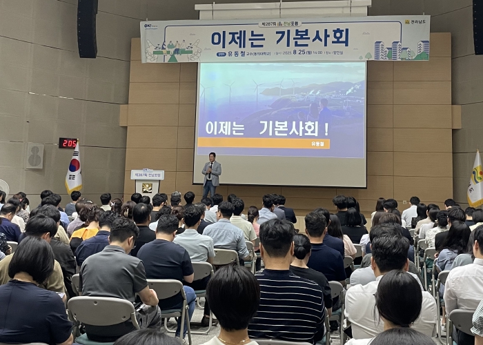 강연자로 나선 유동철 교수는 “기본사회란 모든 사람이 인간의 존엄과 가치를 지키면서 인간답고 문화적인 삶을 누리는 사회를 의미한다”며 “기본소득형 정책은 단순한 복지정책이 아닌, 포용적 성장전략”이라고 강조했다.