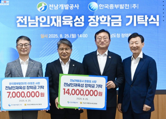 명창환 행정부지사는 “지역 인재들을 위해 뜻깊은 기탁을 해주신 전남개발공사와 한국중부발전에 감사드린다”며 “장학금은 인재들이 꿈을 실현하고 지역을 이끌어가는 원동력이 되도록 소중히 사용하겠다”고 말했다.