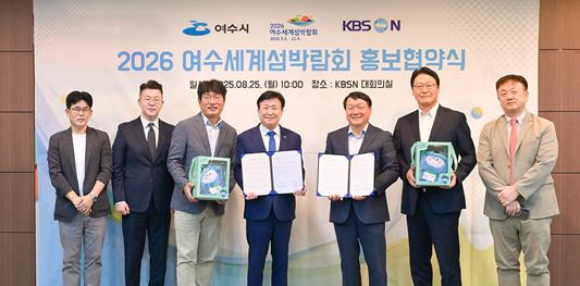 ![]() 여수시(시장 정기명)와 KBS N은 8월 25일 오전 10시 서울 상암동 KBS미디어센터 대회의실에서 ‘2026여수세계섬박람회 홍보 업무협약’을 체결했다. |