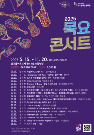 공연 관련 정보는 광주문화재단 홈페이지, 빛고을시민문화관 홈페이지, 광주문화예술통합플랫폼 ‘디어마이광주’에서 확인할 수 있다. 예약 및 문의는 광주문화재단 빛고을시민문화관으로 하면 된다.