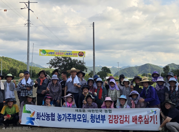 화산농협 농가주부모임 양순희 회장은 “우리 손으로 키운 농작물들을 11월에 김장하고, 어려운 이웃들을 위하여 나눠드릴 수 있다는 생각에 너무 더웠지만, 즐거운 마음으로 배추를 심었다”고 말했다.