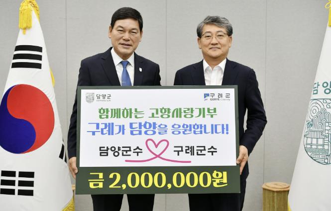 김순호 구례군수는 “구례와 담양은 오랜 시간 이웃으로 함께해 온 소중한 관계”라며 “지난 폭우 피해 이후 어려움을 겪는 담양에 힘이 되기를 바라는 마음으로 기부를 결심하게 됐다”고 말했다.