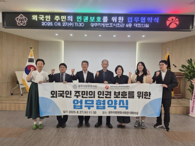 광주광역시는 27일 광주지방변호사회관에서 광주외국인주민지원센터와 광주지방변호사회 이주민법률지원단이 업무협약을 체결했다고 밝혔다.