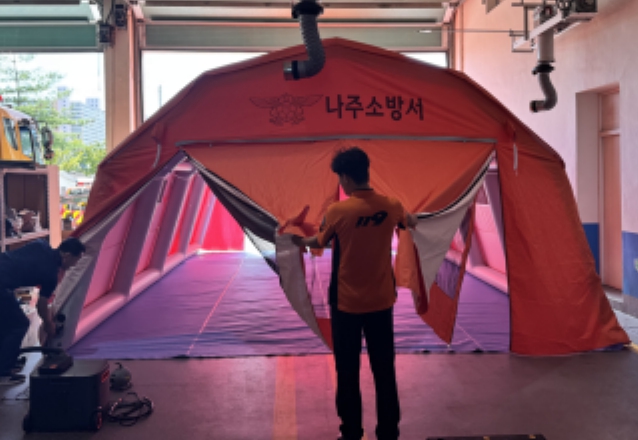 나주소방서는 최근 재난 대응 시 통합지휘체계 구축과 원활한 협업을 위해 지휘텐트, 대용량 파워뱅크, 고출력 이동식 스피커를 신규 도입했다고 27일 밝혔다.