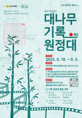 ![]() 담양군문화재단, ‘대나무 기록 원정대’ 참여자 모집 |