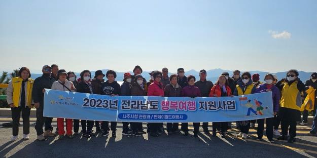 ![]() 나주시, 관광취약계층 행복여행 지원사업 추진-사진은 2023년 전남 행복여행 지원사업 참가자 단체사진. |