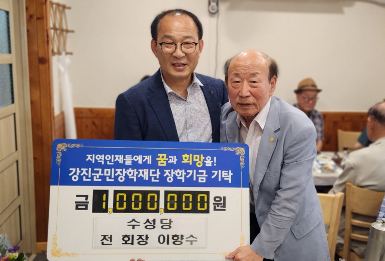 수성당 이향수 전 회장은 한평생 쌀과 함께 살아온 인생 이야기 회고록 출간 기념으로 평소 교육에 대한 관심이 깊어 지역 인재들과 청소년들이 꿈을 펼칠 수 있도록 실질적인 도움을 주고 싶다는 뜻을 전하며, “작은 정성이지만 학생들이 학업에 전념하고 꿈을 이루는 데 보탬이 되기를 바란다”며 소중한 장학금을 기탁했다.