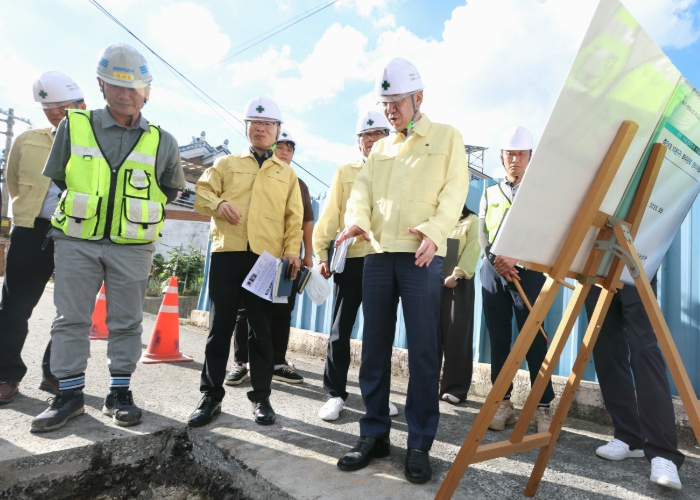 이날 우 시장은 현재 진행 중인 하수처리구역 하수관로 정비사업 구간 중 시공이 완료된 구간에 대한 품질 및 공사의 완성도를 꼼꼼히 점검했다.