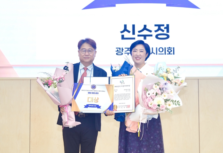 신수정 의장(더불어민주당, 북구3)은 지방의회법 제정 TF 구성운영, 입법평가위원회 구성, 의회 최초 시민참여형 홍보부스 운영, 의정컴퍼런스 개최 등 지방자치 발전과 주민 복리 증진에 성과를 인정받아 행정·의정 리더 분야 대상을 수상하는 영예를 안았다.