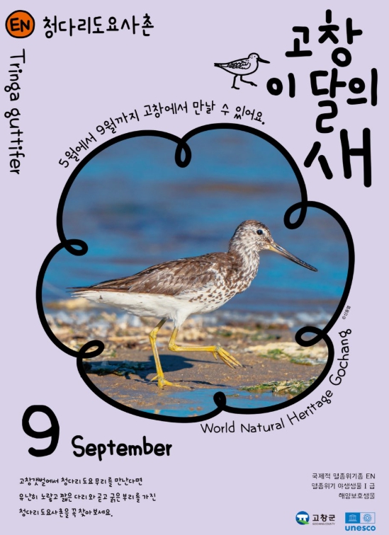 최순필 고창군 세계유산과장은 “고창갯벌은 청다리도요사촌을 비롯한 멸종위기 철새들이 안전하게 머물 수 있는 중요한 서식지다”며, “앞으로도 체계적인 관리와 보호 활동을 통해 세계자연유산 고창갯벌의 생태적 가치를 지켜나가겠다”고 밝혔다.