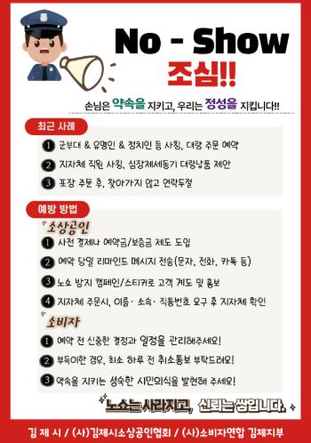 ![]() 김제시, 소상공인 대상 노쇼 기승에‘주의 당부’ |