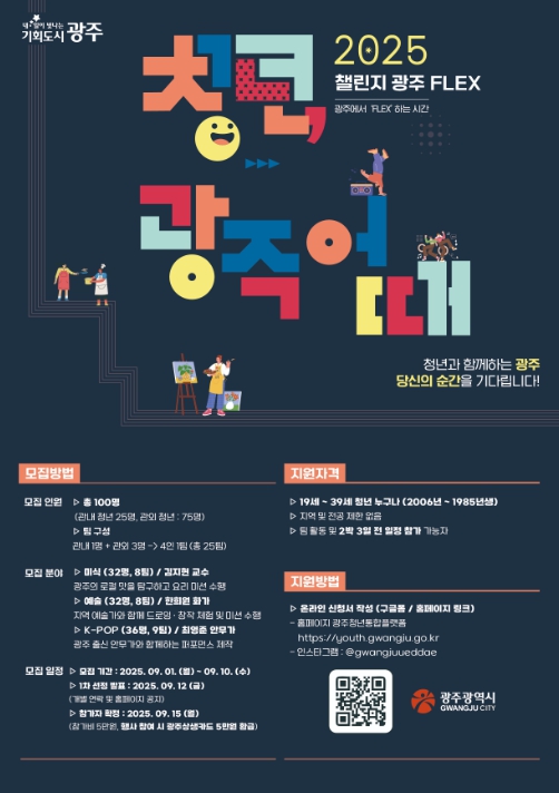 이 프로젝트는 ‘챌린지 광주 플렉스(FLEX)’를 주제로, 참가자들이 미식·예술·케이팝 등 세 가지 분야 가운데 하나를 선택해 광주만의 매력을 깊이 체험할 수 있도록 기획됐다.