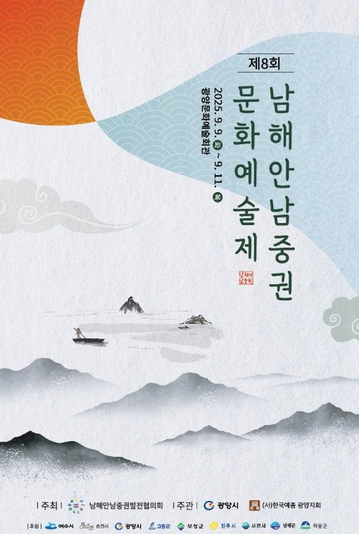 행사 첫날인 9일에는 광양문화예술회관 대공연장에서 기념식이 열리며, 남중권협의회 소속 9개 시・군 단체장과 지역 예술인들이 함께한다.