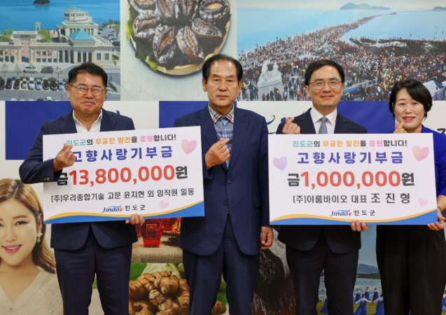 ![]() ㈜우리종합기술 및 ㈜이룸바이오, 진도군에 고향사랑기부금 기탁 |