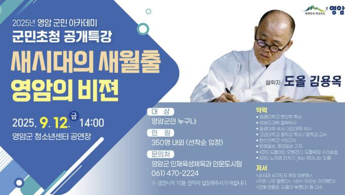 이번 특강에서는 ‘새시대 새월출’을 화두로 영암의 고유한 가치와 잠재력을 재조명하고, 이를 바탕으로 미래로 나아갈 실천적 해법도 제시하는 자리가 될 전망이다.