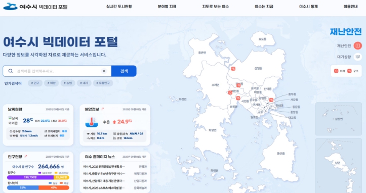 시 관계자는 "이번 빅데이터 포털 구축을 통해 시민들이 여수시의 다양한 현황을 손쉽게 파악할 수 있게 됐다"며 "데이터에 기반한 과학적 정책 수립으로 행정 서비스 질을 한 단계 높일 수 있을 것"이라고 설명했다.