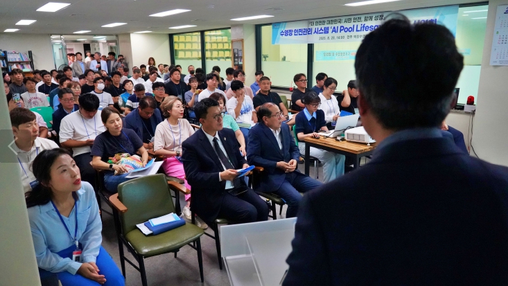 ![]() 수영장 안전관리 시스템 ‘AI Pool Lifesaver’ 시연회 현장 |