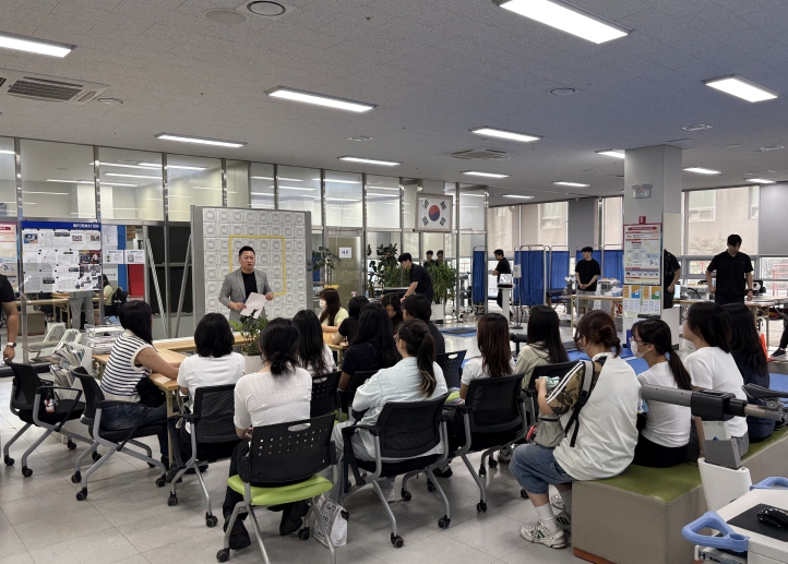 ![]() 김석환 스포츠과학연구원장이 3일 오전 연구원에서 광주여대 자원봉사 인력들을 대상으로 최종(5차) 리허설을 진행하고 있다. |