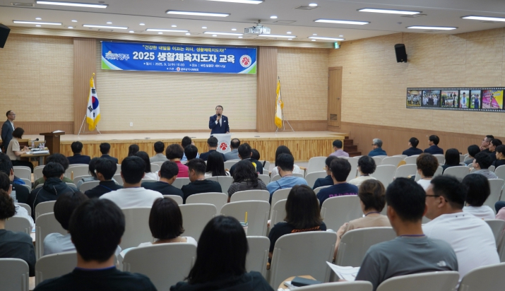 시체육회는 3일 오전 10시 국민생활관 세미나실에서 전갑수 체육회장, 5개 구체육회 생활체육지도자 및 사무국장 등 관계자 100명이 참석한 가운데 ‘2025 생활체육지도자 교육’을 실시했다고 밝혔다.