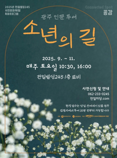 참가자를 대상으로 ‘후기 이벤트’도 진행한다. 인문투어 참여 뒤 후기를 현장 사진과 함께 필수 해시태그(#인문투어 #소년의 길 #전일빌딩 등)를 작성해 개인 사회관계망서비스(SNS)에 게시하면 추첨을 통해 기념품을 지급할 예정이다.