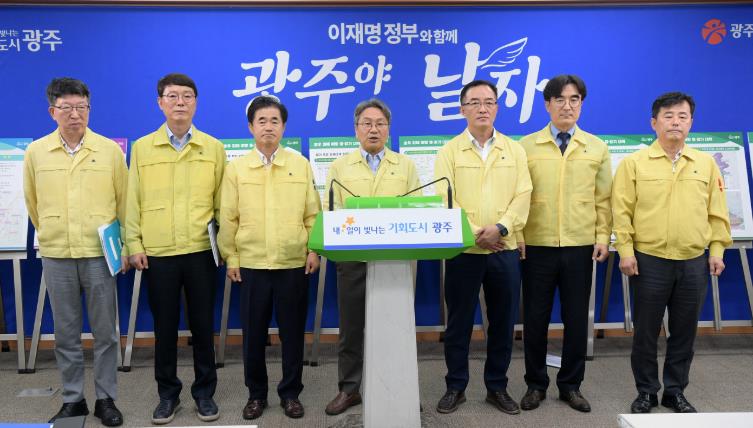 강기정 광주광역시장은 4일 시청 브리핑실에서 5개 자치구와 함께 ‘광주시민 생활안정을 위한 호우피해 복구 및 침수 예방 대책’ 기자회견을 열어, 이같은 내용의 대책을 발표했다.