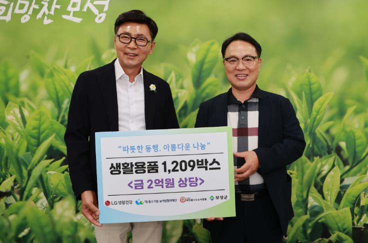 ![]() 보성군, (사)희망을 나누는 사람들·㈜이인에서 따뜻한 나눔 실천_사)희망을 나누는 사람들은 LG생활건강, 대·중소기업·농어업협력재단과 함께 2억 원 상당의 생활용품 1,209박스를 기탁했다_(왼쪽 보성군수 김철우_오른쪽 사)희망을 나누는 사람들 회장 김동우) |