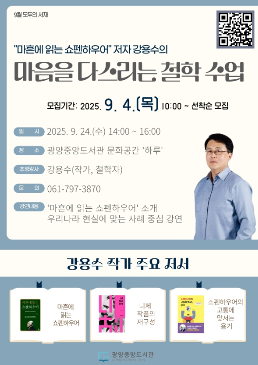 참여는 광양시민 누구나 가능하며, 신청은 9월 4일부터 광양시립도서관 누리집에서 선착순으로 접수한다.