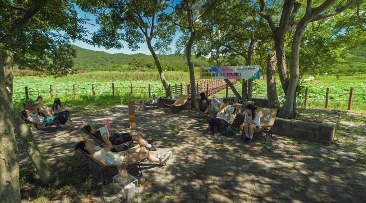 ![]() 병영면 홍교 하고저수지에서 한가로이 책을 읽고 있는 모습 |