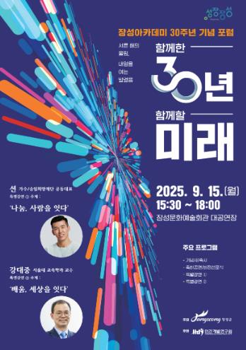 ‘함께한 30년, 함께할 미래’를 주제로 장성아카데미가 걸어온 길을 돌아보는 기념식과 특별강연을 연다.