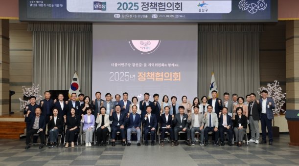 ![]() 5일 7층 윤상원홀에서 박병규 광산구청장과 광산구 갑·을 지역위원회가 함께 2025년 정책협의회를 개최했다. |