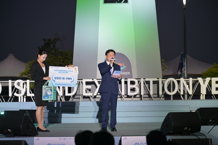 섬박람회 성공기원 퍼포먼스는 섬 주민의 참여로 연출됐다. ‘위대한 섬의 약속, 오색 바다’를 주제로 영상에 등장했던 섬 주민들이 무대에 올라 빛을 활용한 세리머니를 했다.