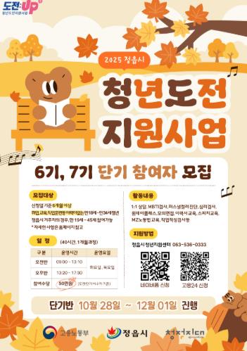 ![]() 정읍시, 2025년 청년도전지원사업 단기과정 참여자 모집 |