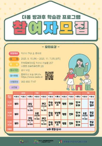 익산시 관계자는 "방과후학습관 '더봄'은 1기와 2기 운영을 통해 효과가 입증된 지역 맞춤형 교육 모델"이라며 "3기에서는 전통과 미래, 창의와 협업이 결합한 프로그램을 통해 학생들이 잠재력을 마음껏 발휘할 수 있도록 적극 지원하겠다"고 말했다.