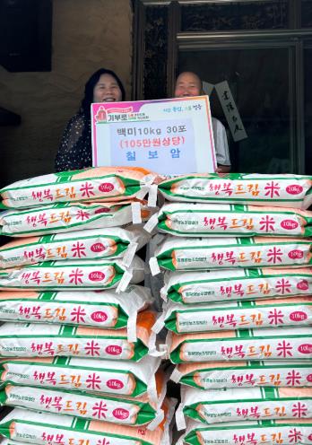 칠보암은 해마다 추석 명절을 즈음해 신도들의 정성을 모아 백미를 기탁하며 소외된 이웃과 온정을 나누고 있다.