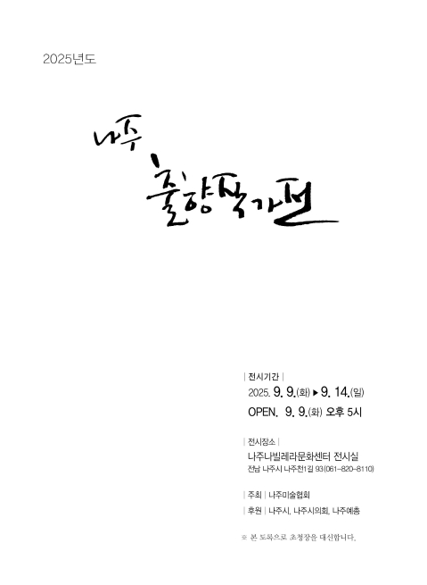 ![]() 나주시 ‘2025 출향작가초대전’ 웹포스터. |