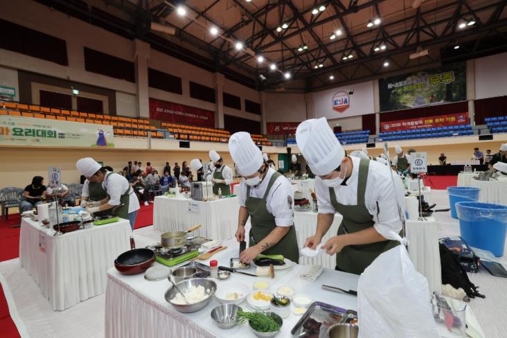 ‘조리법 사전 심사’를 거쳐 선발된 무주군 지역 내 외식 업소뿐만 아니라 조리 전공 고등학생 및 대학생, 그리고 60대 일반인까지 다양한 계층의 20개 팀이 참가해 ‘천마’ 요리 실력을 겨뤘다.