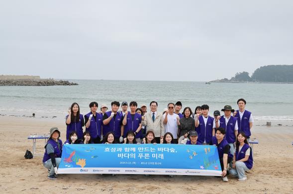 ![]() 효성그룹과 협력하여 추진 중인 _바다 숲_ 조성 사업 참가자 단체 사진 |