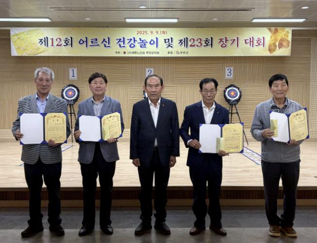 대회 결과 건강놀이대회 ▲종합우승 2년 연속 대한노인회 무안읍분회 ▲준우승 청계면분회 ▲장려상 몽탄면분회가 차지했으며, 장기대회 △1위는 2년 연속 무안읍 양재석씨 △2위 일로읍 정덕균씨 △3위 해제면 정찬수씨가 수상의 영예를 안았다.