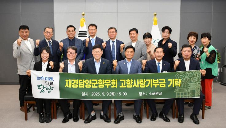 재경담양군향우회는 2023년 고향사랑기부제가 시행된 이후 매년 기부에 앞장서고 있으며, (재)담양장학회에 장학금을 기탁하고 이웃돕기 성금도 전달하는 등 고향 발전을 위해 다양한 활동을 이어오고 있다.