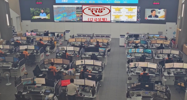 종합접수대 30대에 비상 점멸등(적색)과 경고음을 송출하고, 멘트 방송을 통해 모든 수보요원에게 상황을 알린다.