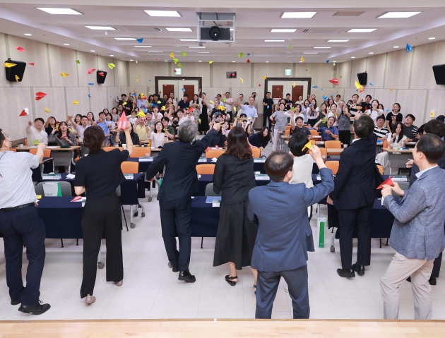 행사의 마지막은 ‘신뢰 ON, 변화 NOW, 혁신 UP’ 슬로건이 적힌 종이비행기를 전 직원이 함께 날리는 퍼포먼스로 마무리됐다.