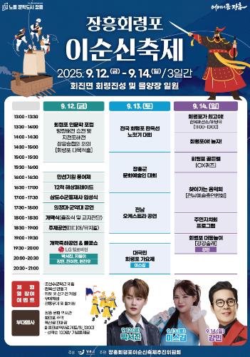 ![]() ‘2025 장흥회령포 이순신 축제’ 9월 12일부터 3일간 개최 |